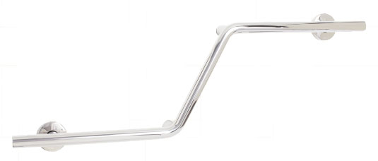 - Luxury and style meet solid functionality in this angled grab bar, designed for security and comfort in the shower