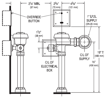 Concealed flushometer w/ 13" x 17" wall box, for 1-1/4" back spud urinal 2-3/4" to 10-3/4" LDIM - dimensions - 1.0 GPF |