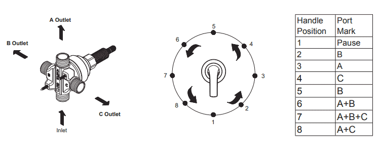 1-Handle 4-Port Shower Diverter Valve ONLY
