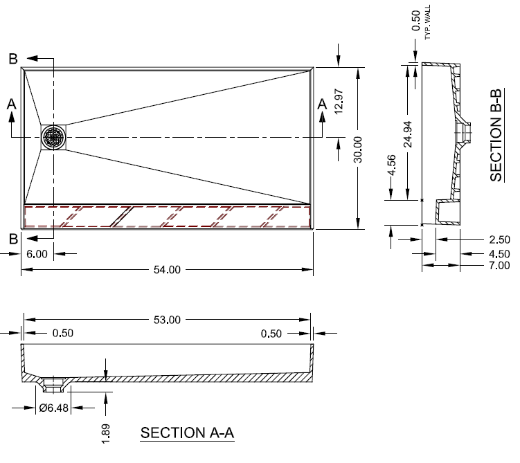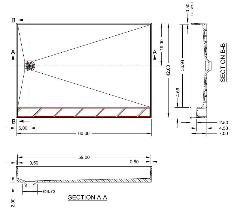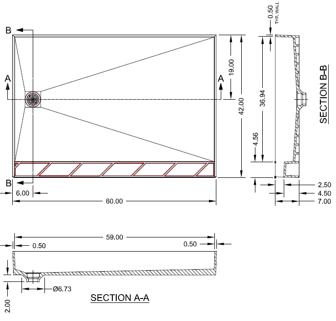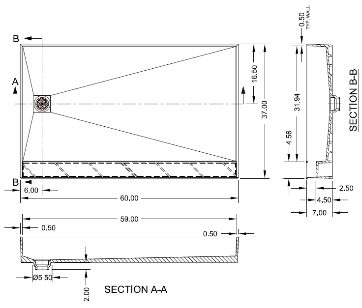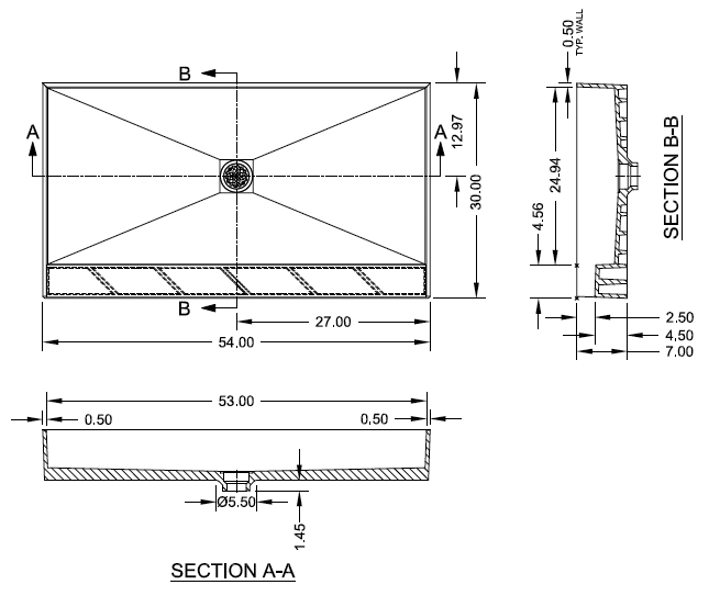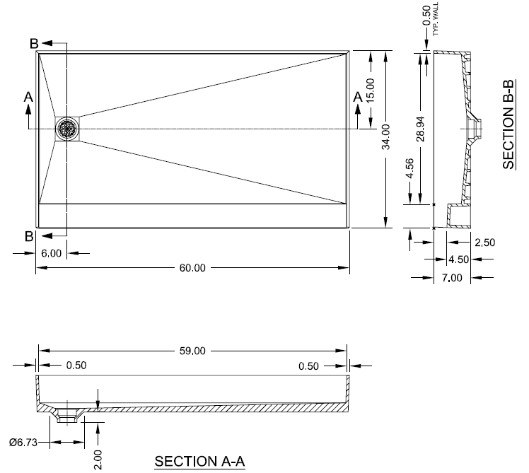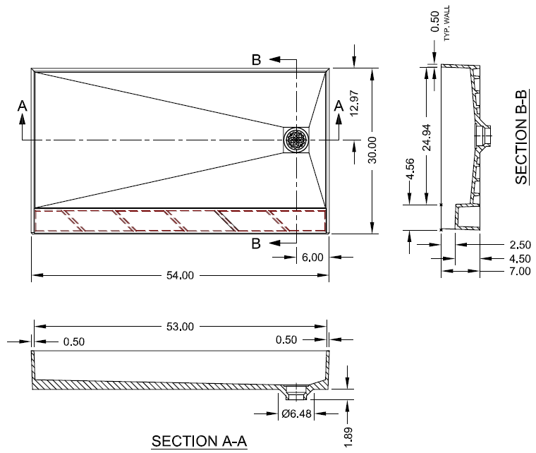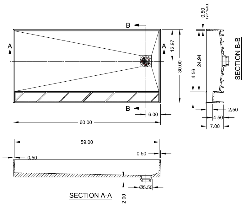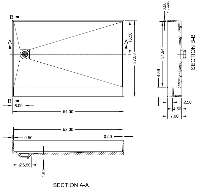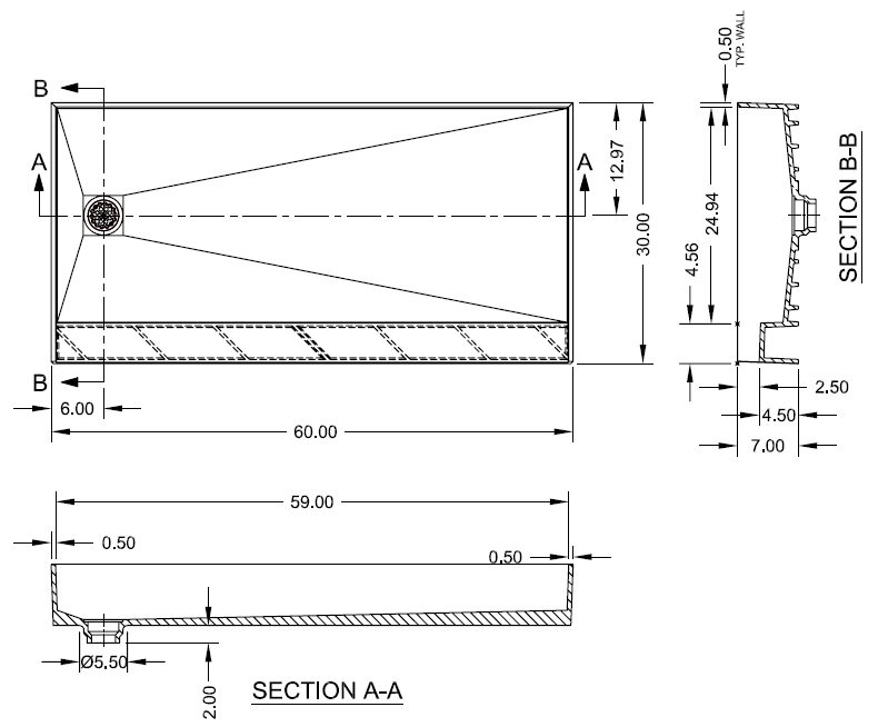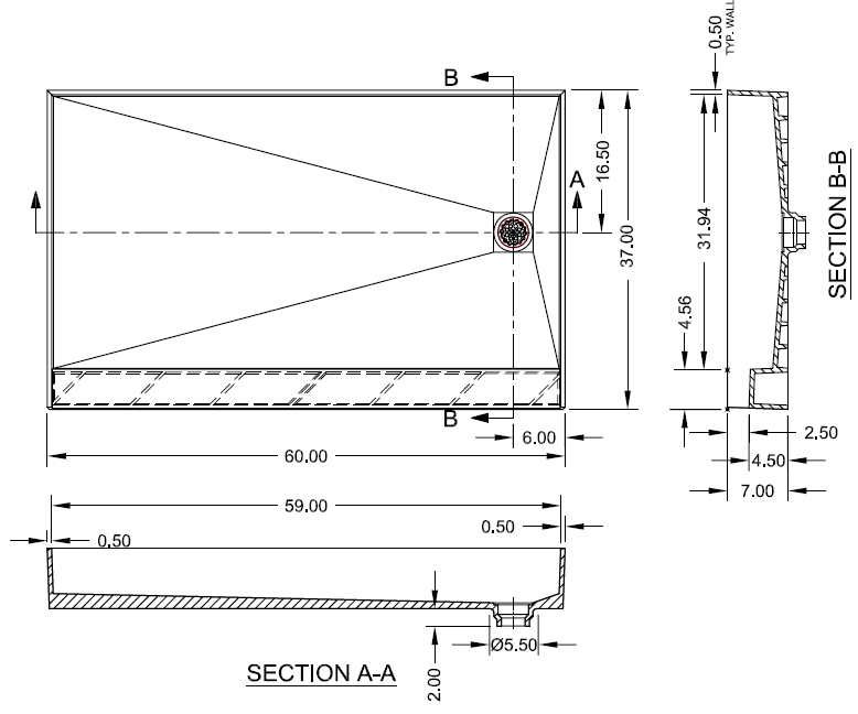 A. These ready to tile shower pans are made of 1/2" thick BAYDUR 645 polyurethane.