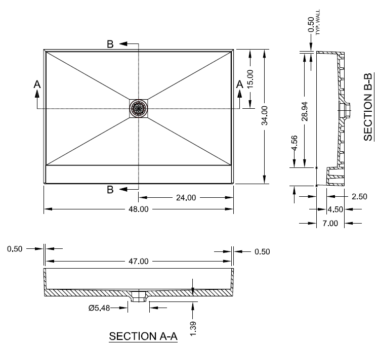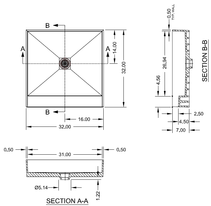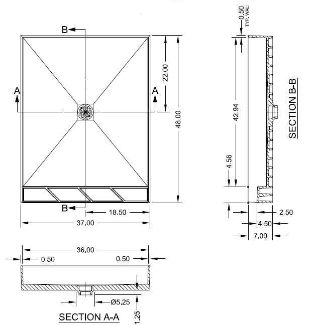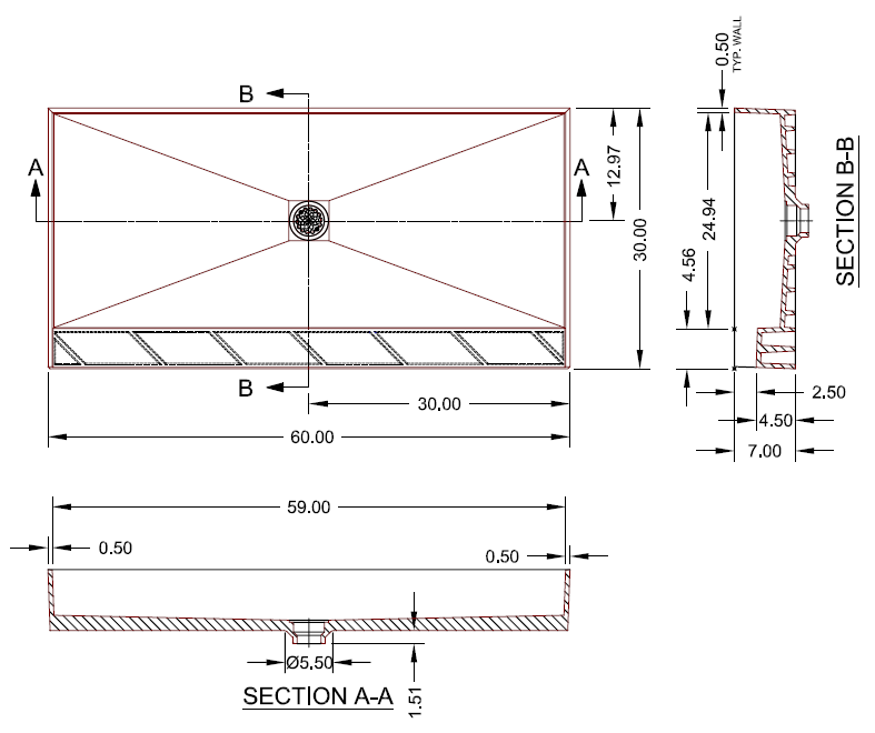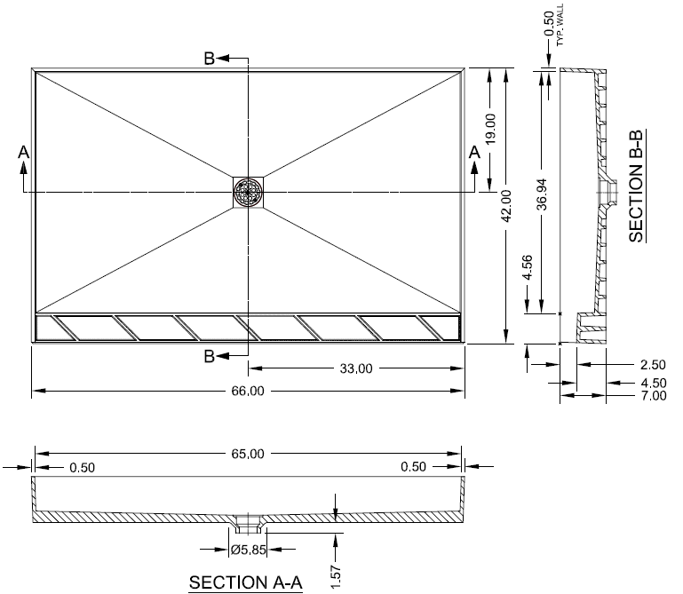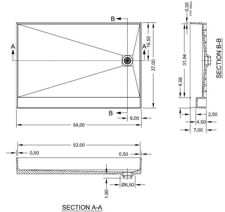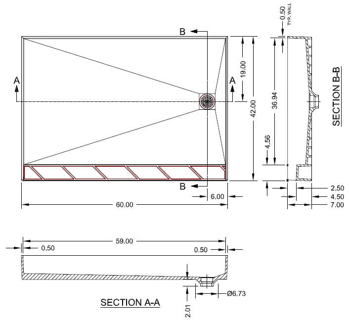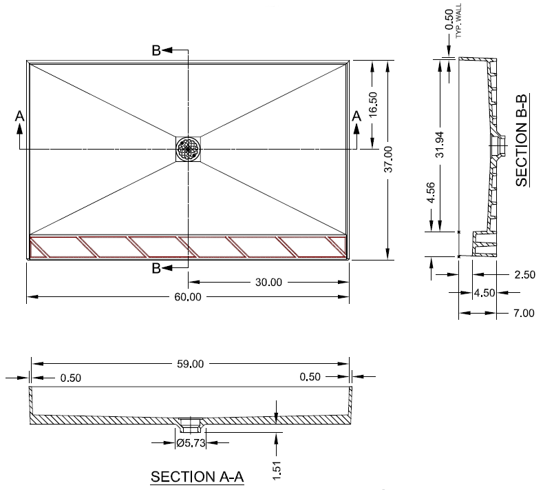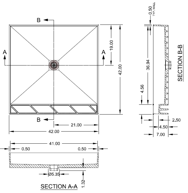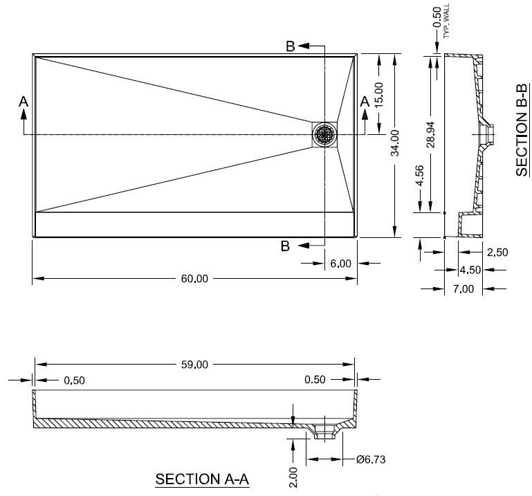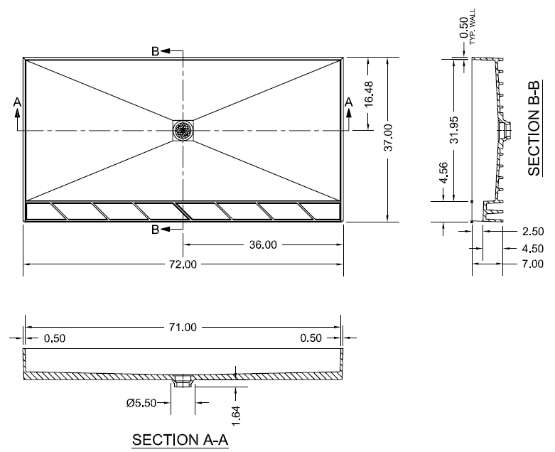A. These ready to tile shower pans are made of 1/2" thick BAYDUR 645 polyurethane.