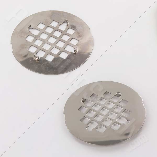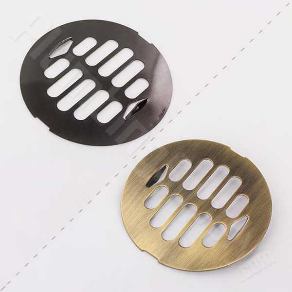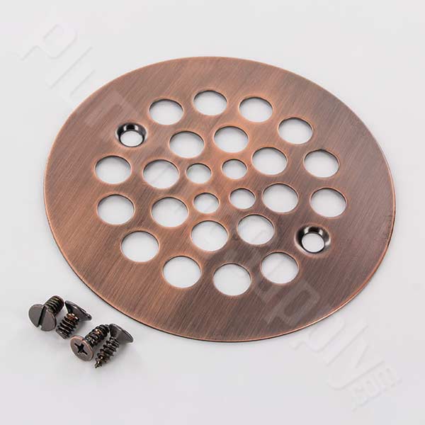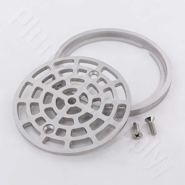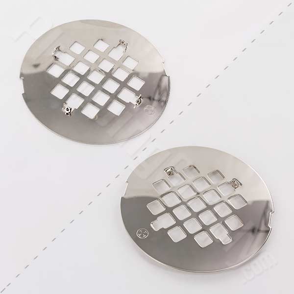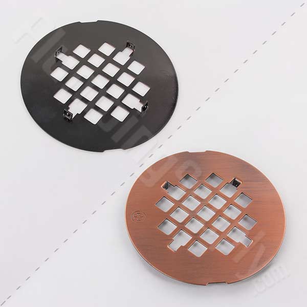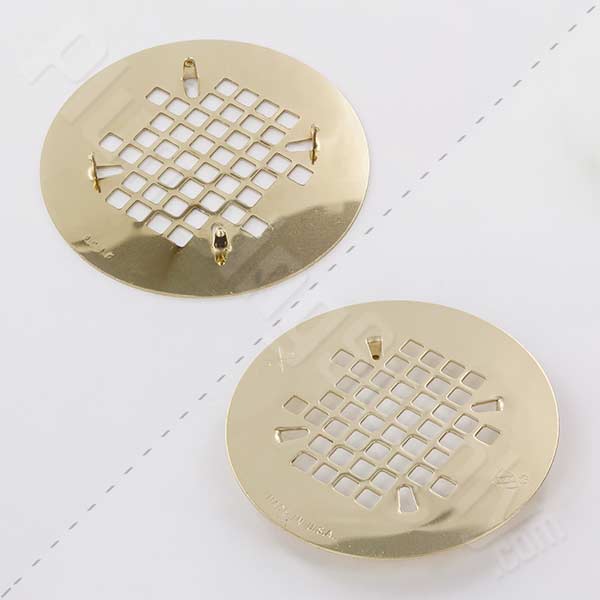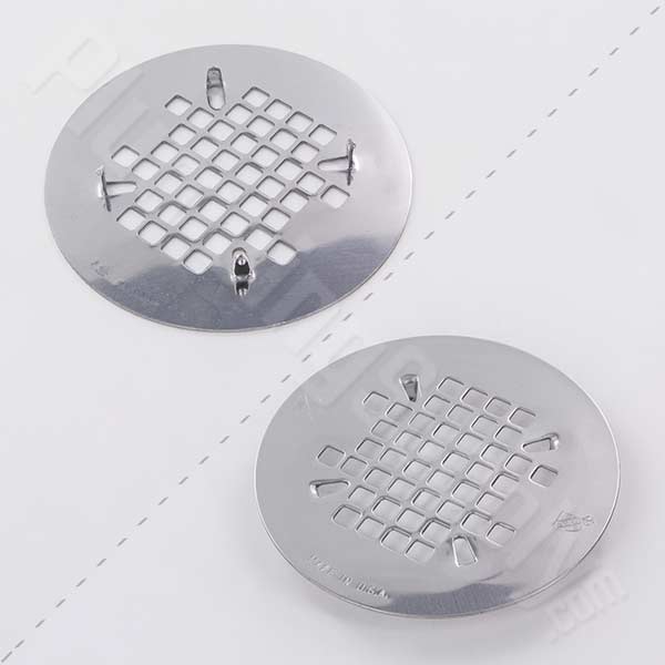 - Designer drain covers 3 7/8" Round with 3 3/8" center to center fastening holes available here