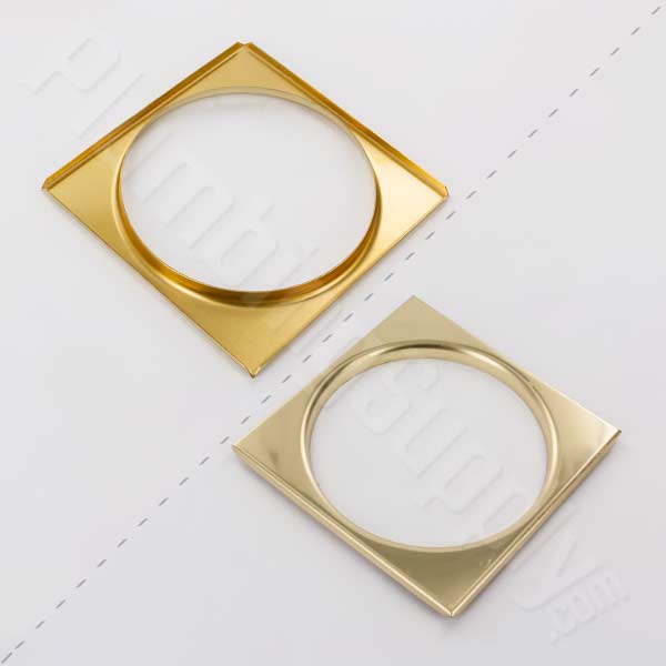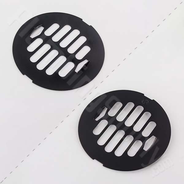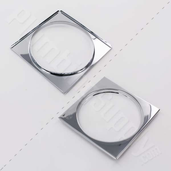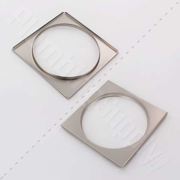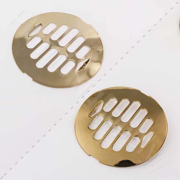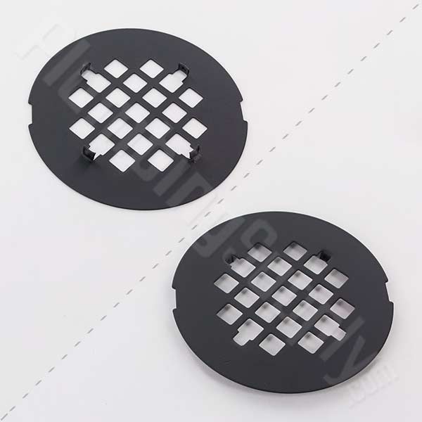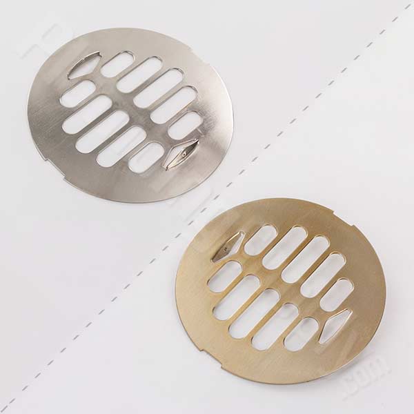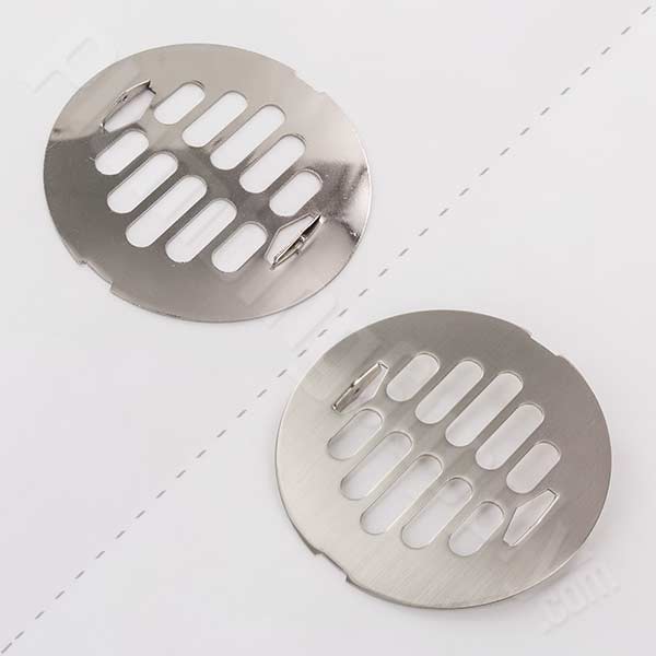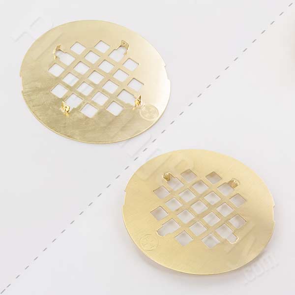 - Designer drain covers 3 7/8" Round with 3 3/8" center to center fastening holes available here