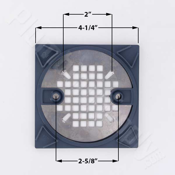 - 4-1/4" diameter strainer drain cover holes 2-5/8" center to center