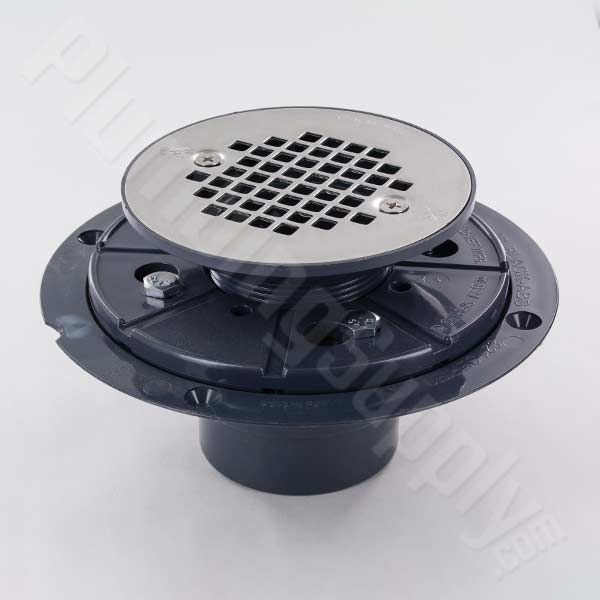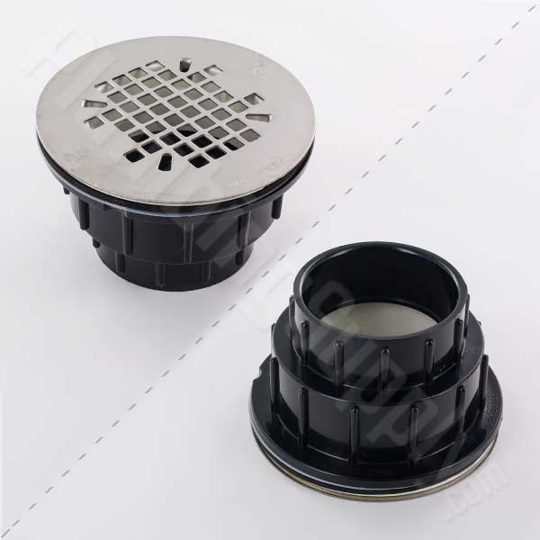 Premium Shower Pan Drain with Cast Metal Ring and Strainer: PVC