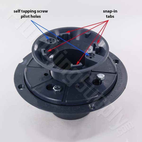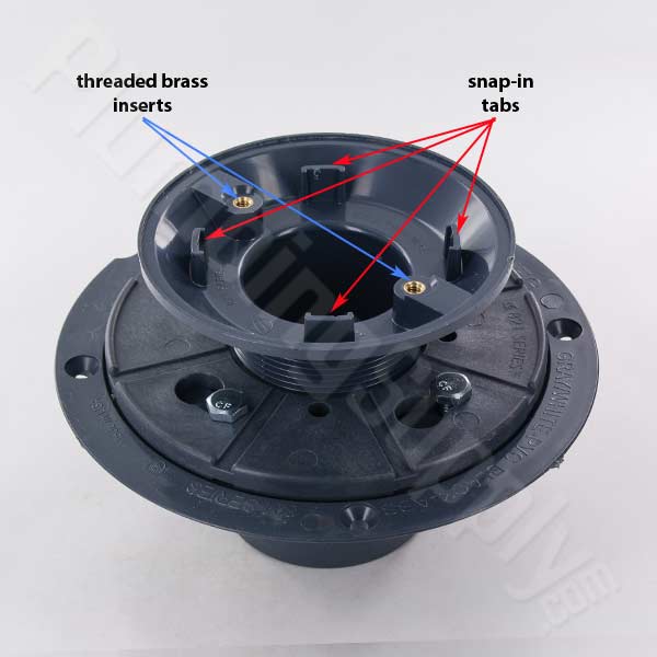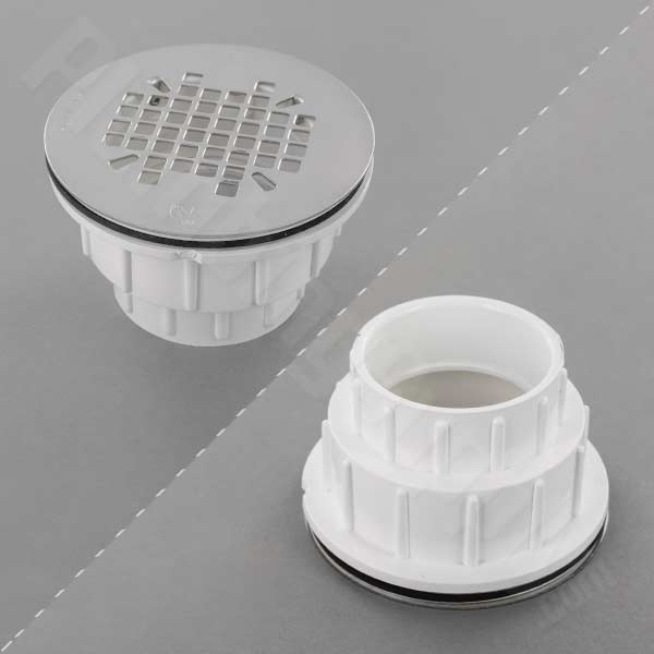 - PVC head adapter provides rim around strainer for easy strainer replacement in tile applications