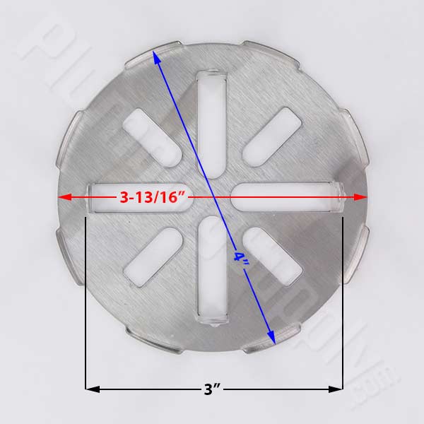 - Durable 4-1/4" screw-in plastic strainer - stainless steel finish