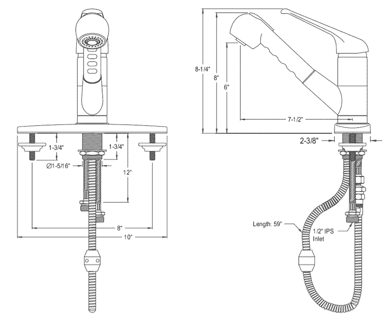 Classic style with modern functionality together in an elegantly designed faucet, suitable for any home - compact design offers single handle ease of use, along with a convenient side-spray for quick kitchen clean up - 1/2" IPS inlet with Duraseal valves -