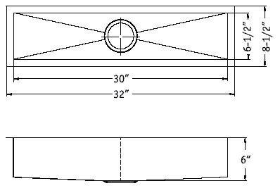 Long Straight Stainless Steel Trough Sink 32" x 8-1/2" 30" x 6-1/2" - 6" depth $367.00