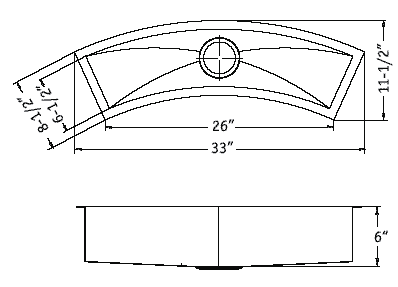 Curved Stainless Steel Trough Sink 33" x 11-1/2" 26" x 6-1/2" - 6" depth $507.30