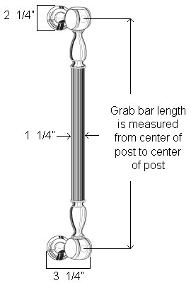 A. These grab bars are designed to meet current ADA regulations so they may be installed in the home and in hotels, hospitals, guest homes, businesses, or anywhere else a stylish grab bar is needed. This means that the space between the wall and the grab bar must be 1-1/2". As the bar itself has an outer diameter of 1-1/4", the grab bar occupies an approximate total of 2-3/4" - 3", including brackets and finials, from wall to furthest point of the grab bar.