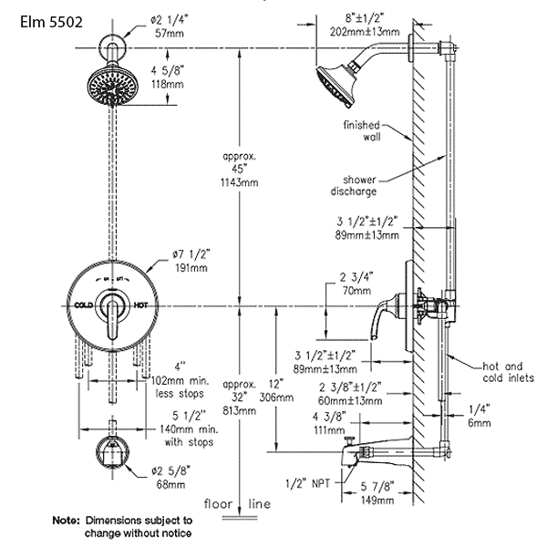 • View 5502 Tub & Shower System with Diverter Tub Spout specifications