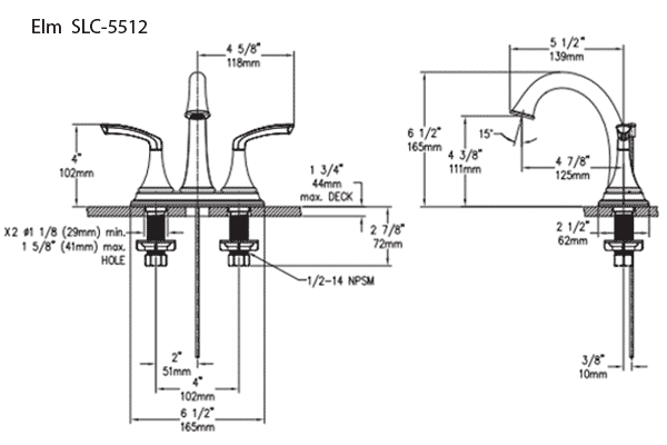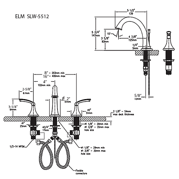 • 5502 includes 5 7/8" length diverter tub spout