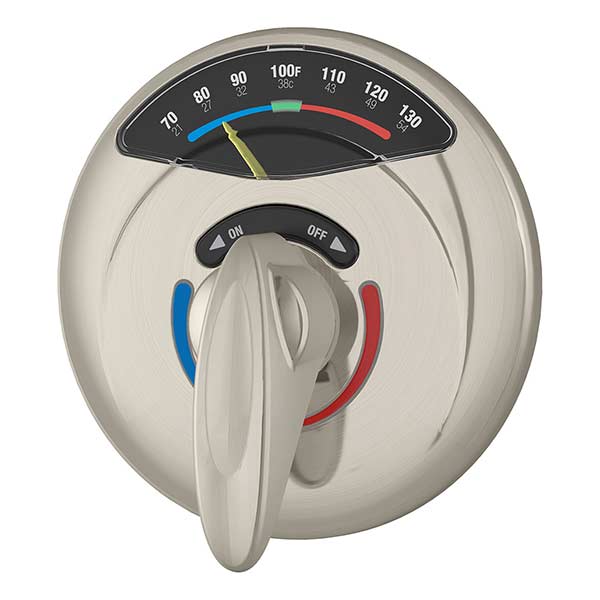- Visu-Temp with Clear-Vue pressure-balancing mixing valve with thermometer controls hot & cold water temperature
