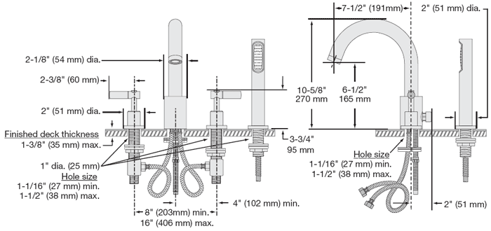 • Handles may be installed 8-18" apart to accommodate a variety of tubs