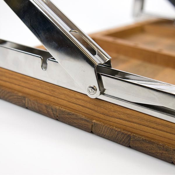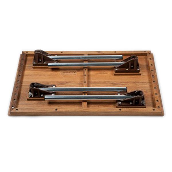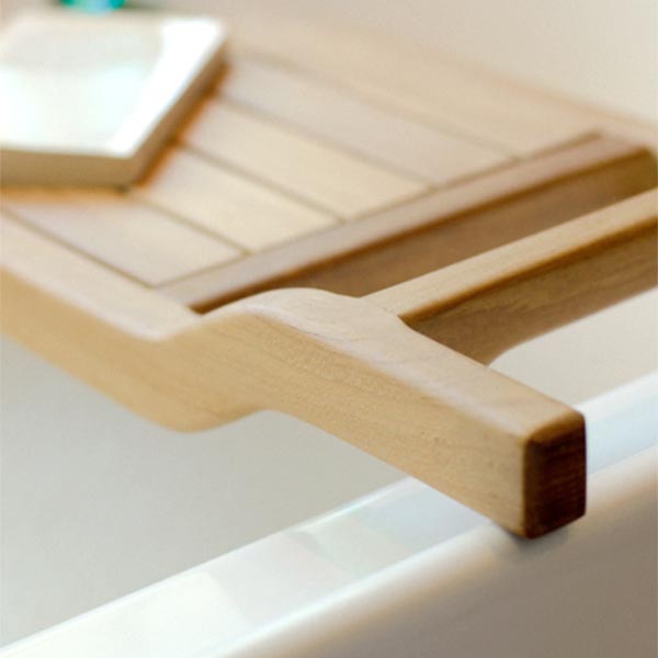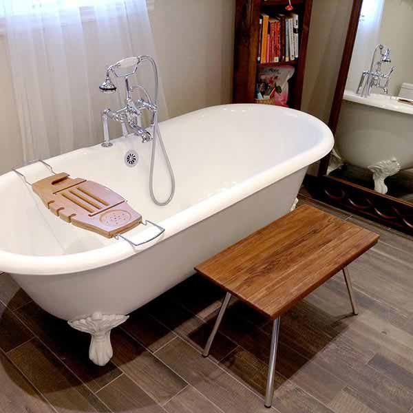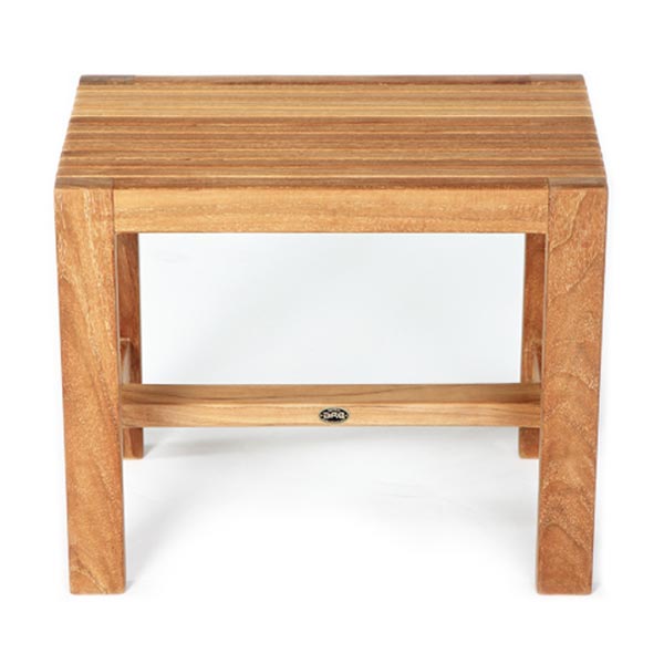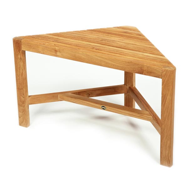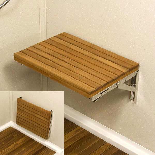 A. Actually, on most of these benches, the water drains right through the bench. They are built with 1/8-inch space between each slat so that water drains right through to the shower drain. The exception is the fold down shower bench which has grooves milled into the surface to aid with drainage.