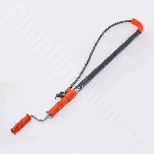 A flexible bulbous type head with a built in retriever coil helps protect the inner walls of a toilet bowl from chipping or breaking, while the double layered 15/32" O.D. cable is easily worked through sharply angled trap way passages. A vinyl bowl guard allows the cable to be placed in the bottom of the bowl without scratching the bowl and allowing the cable to be released directly into the trap way. The telescoping auger lets you clear stoppages that may be just beyond the bowl. There are three extra feet of cable hidden in the guide tube that can quickly and easily be released, when needed, by pressing a button and pulling out the crank handle.