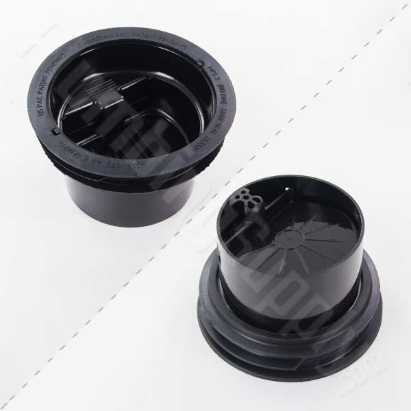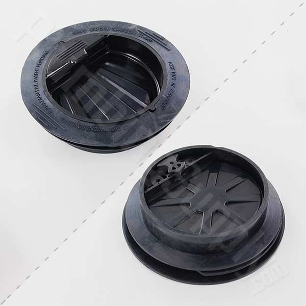 - Four flexible sealing ribs keep the waterless trap seal firmly in place inside the drain