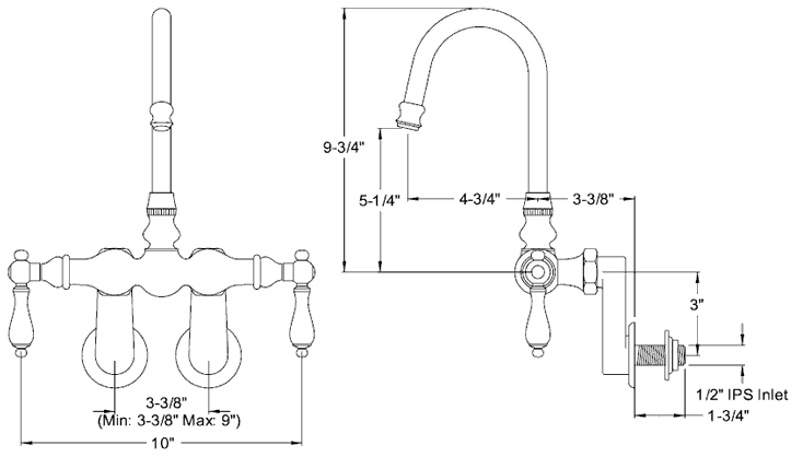 - Variable spread wall mounting (allows adjustment of centers from 3-3/8" to 9")