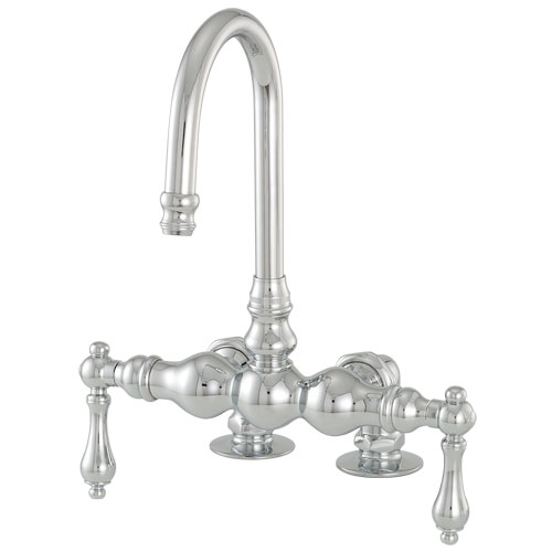 The graceful design of this hi-rise gooseneck spout leg tub faucet will provide that vintage-inspired design you've been looking for. The graceful lines, beautiful finishes, and choice of handles will ensure that you are personalizing the faucet just the way you like. In addition, the gooseneck faucet is code approved, so you can be sure this installation will be your last - no replacing the faucet because it doesn't meet code standards. The sleek good looks and high quality, premier finishes will complement your décor and last for many years to come.