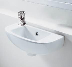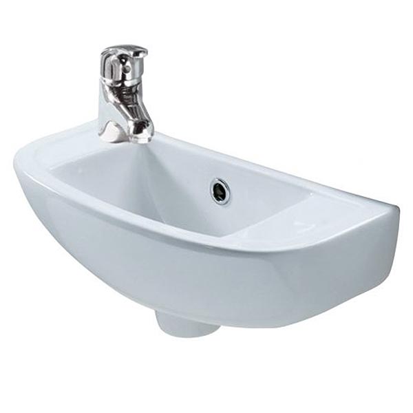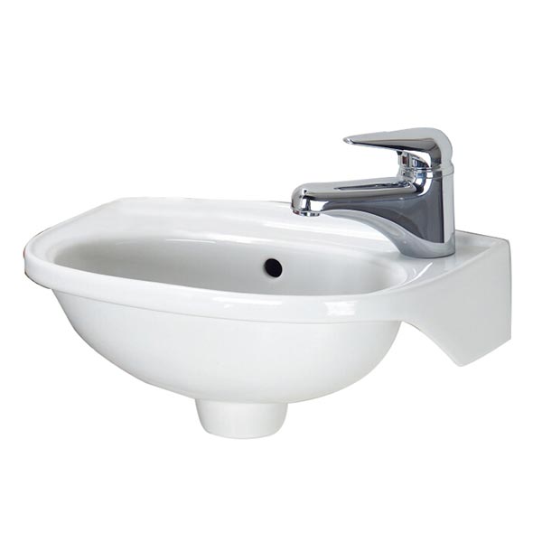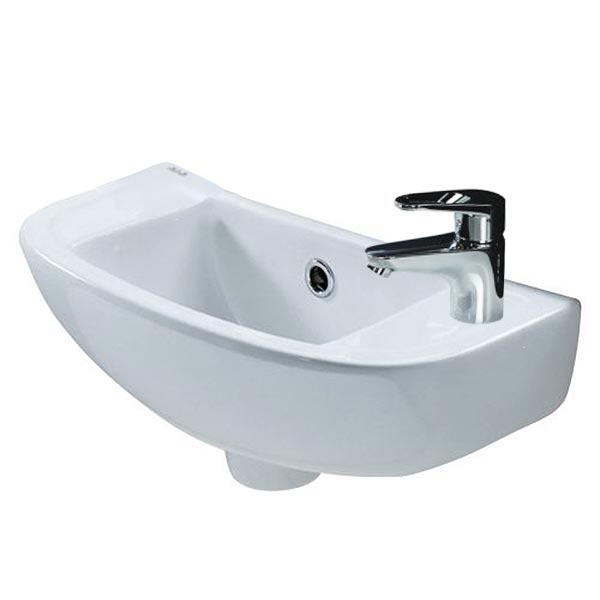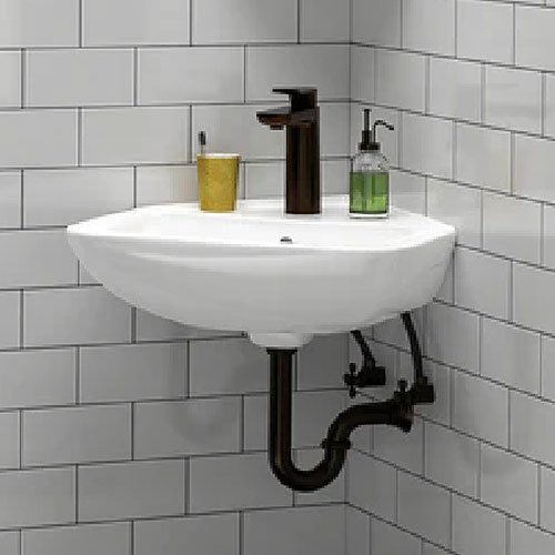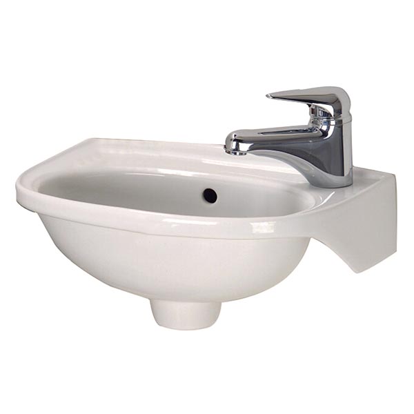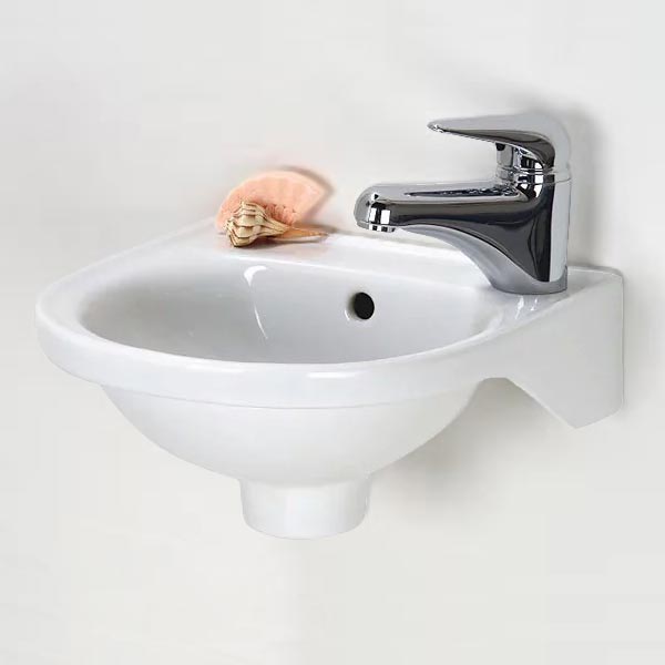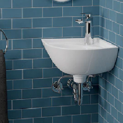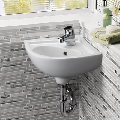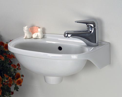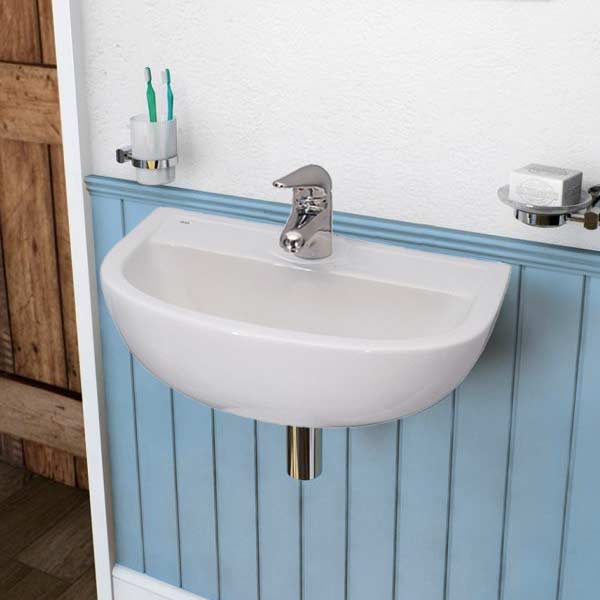 - Charming wall-hung basin will tuck neatly into a corner of your bathroom