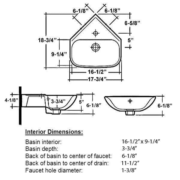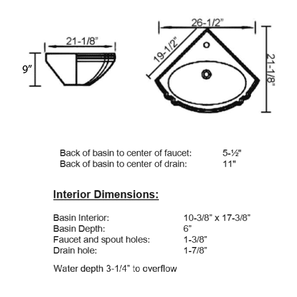 - Small built-in ledges on either side hold the faucet (your choice of left or right side pre-drilled hole - faucet sold separately) so the sink sticks out of the wall less