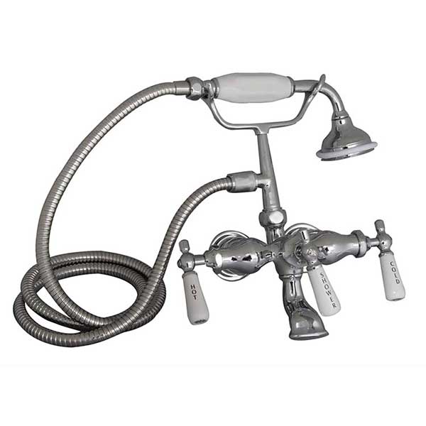 This beautiful vintage style leg tub faucet, with it's classic lines and nostalgic accents, will add a truly luxurious touch to your bathroom. The graceful style with a comfortable telephone-style handshower, matching hose, and triple plated finishes, make this faucet stand out above the rest, and will provide years of worry-free service.