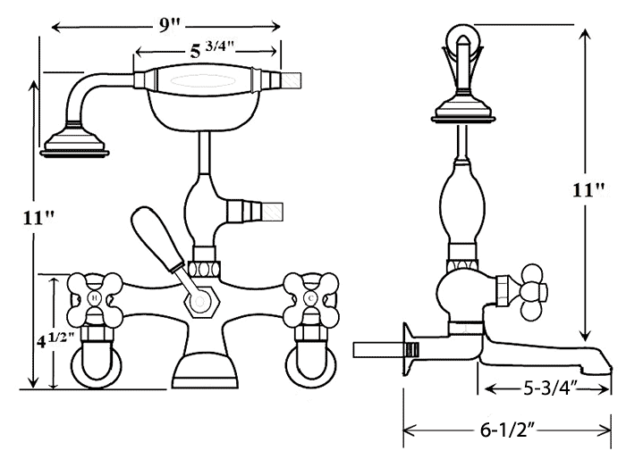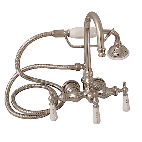 These classic, Victorian style clawfoot faucets, with their beautiful finishes and graceful lines, will add just the right touch of elegance to your bathroom. Available with multiple handle choices, this tub faucet with telephone-style handshower is a perfect addition to your home, and makes rinsing or bathing for those with access difficulties a snap.