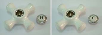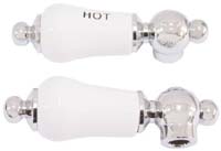 - Porcelain handles marked hot, cold and shower