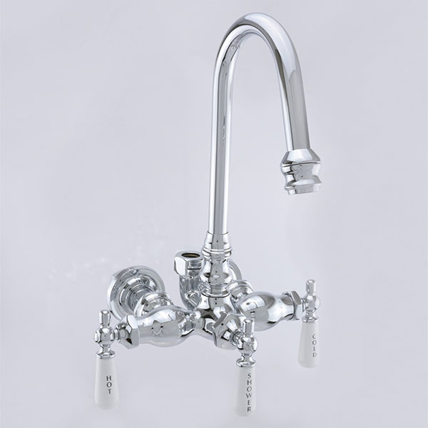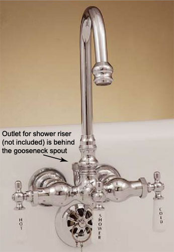 To enhance your clawfoot tub look, these distinguished tub fillers with convenient shower diverter allow you to customize your old-fashioned tub/shower by choosing the faucet only and adding a #P0009 shower riser and the shower head of your choice.
