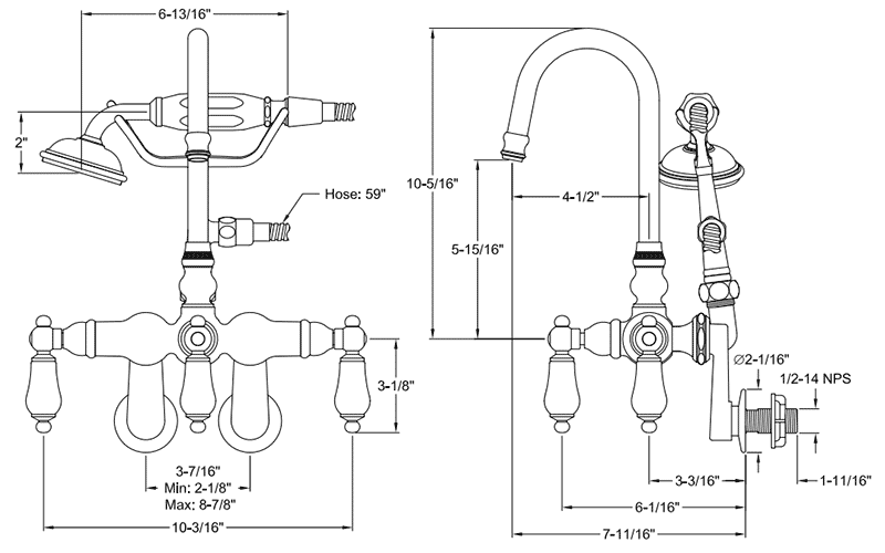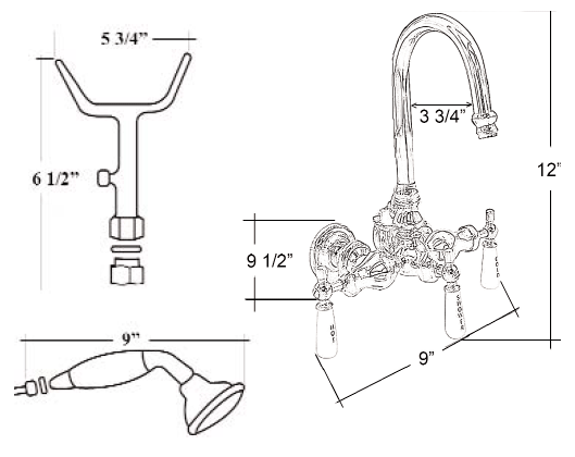 This hi-spout variable spread leg tub faucet, like the faucet above, has a vintage-inspired design that will add an elegant feature to your bathroom that will complement any décor, and the classic lines and beautiful finishes complete the designer look you're looking for in your home. The handshower allows greater flexibility when there are difficulties with a regular shower, and with the added convenience of a variable spread option, this faucet is sure to please.