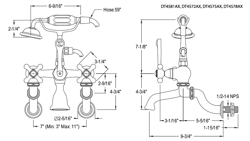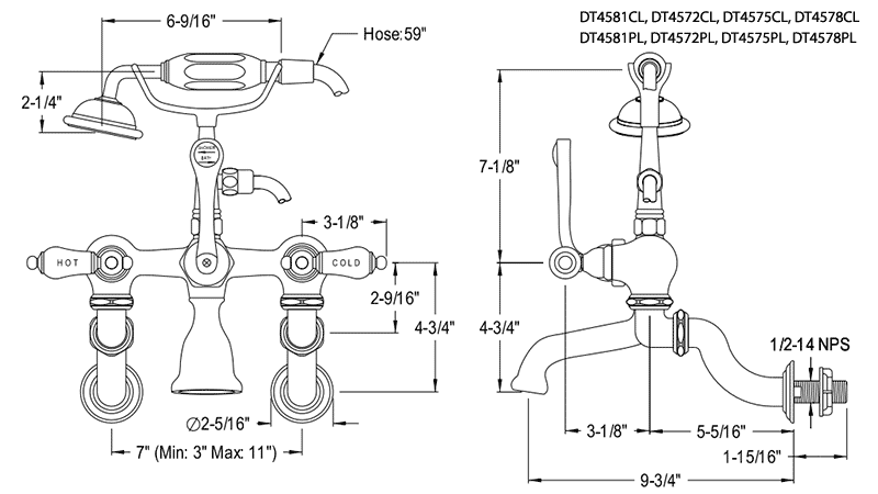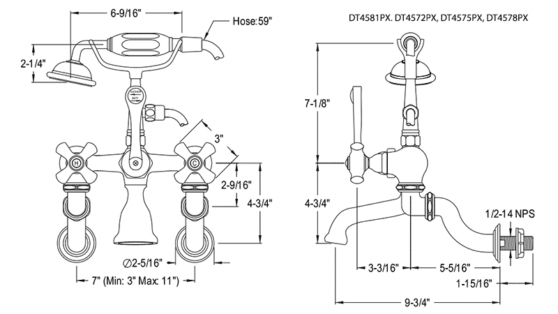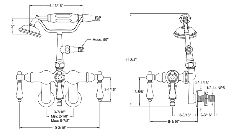 The classic style of these hard to find 3-3/8" center tub wall mount faucets will give your clawfoot tub the authentic vintage look you want, while providing the consistently great performance you need. The depth of the finishes and smooth operation make these classic faucets a wonderful addition to your décor.