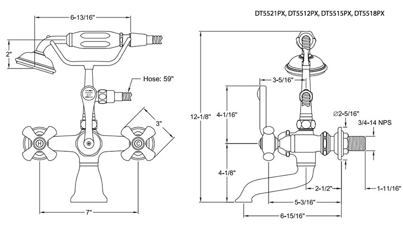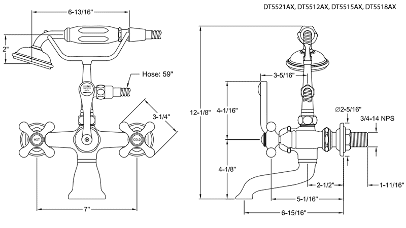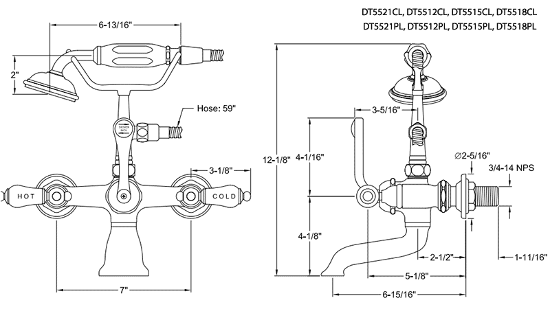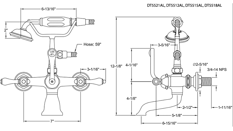 - Vintage telephone style 2.5 gpm hand shower with 59" hose