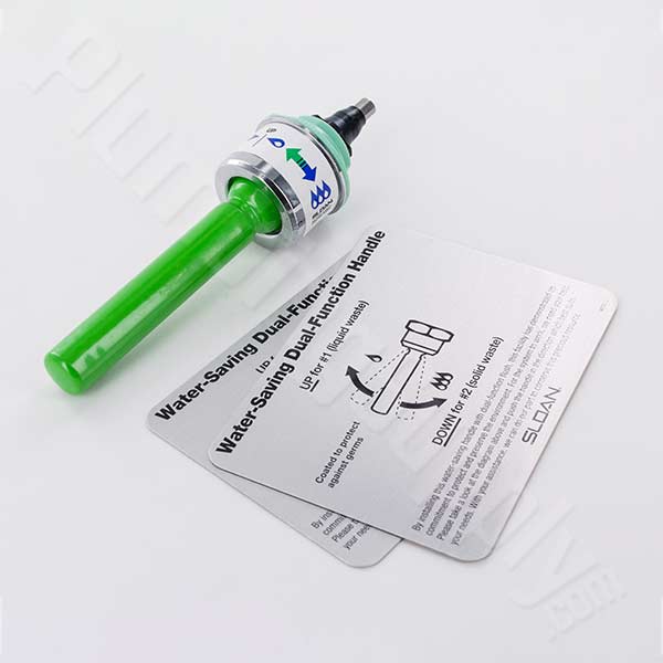 These revolutionary water saving flush valves by Sloan offer a unique method to reduce the amount of water used to flush the toilet. A majority of flushes are for liquid waste, and utilizing the liquid waste feature will use 30% less water, which will help to conserve water and protect the environment. As an added bonus, you do not need to replace your existing Sloan flush valve, as we also offer a retrofit handle and diaphragm kit.