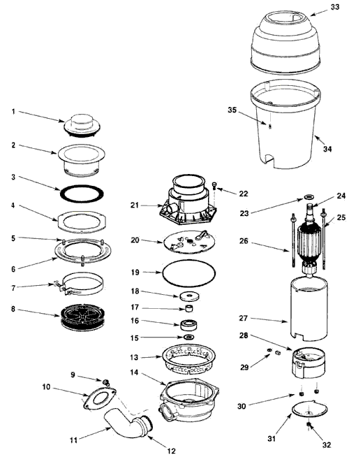 Whirlaway Pro 1084 Disposer Replacement Parts