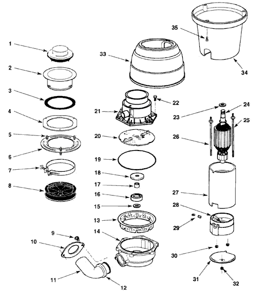 Whirlaway Pro 584 Disposer Replacement Parts